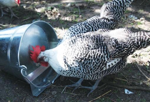 -Wat zou er gebeuren als de watergleuf van de emmers een stuk groter zou zijn ? (Ook daarin zouden vogels zich kunnen wassen.  Daarenboven zouden kippen te diep ‘in het glas’ kijken, waardoor hun kuif eerst nat en later in aanraking met stof helemaal ondergestoft zou worden.)