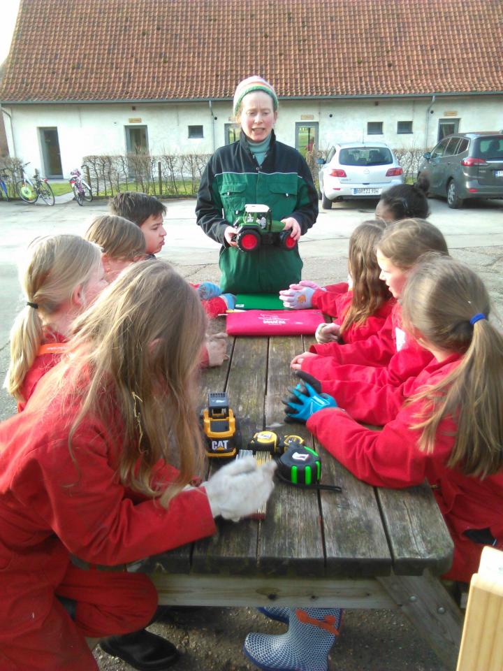 Stel enkele speelgoedtractors (of toebehoren) tentoon op een ontdektafel.  In de buurt staat ook het levensecht model opgesteld.